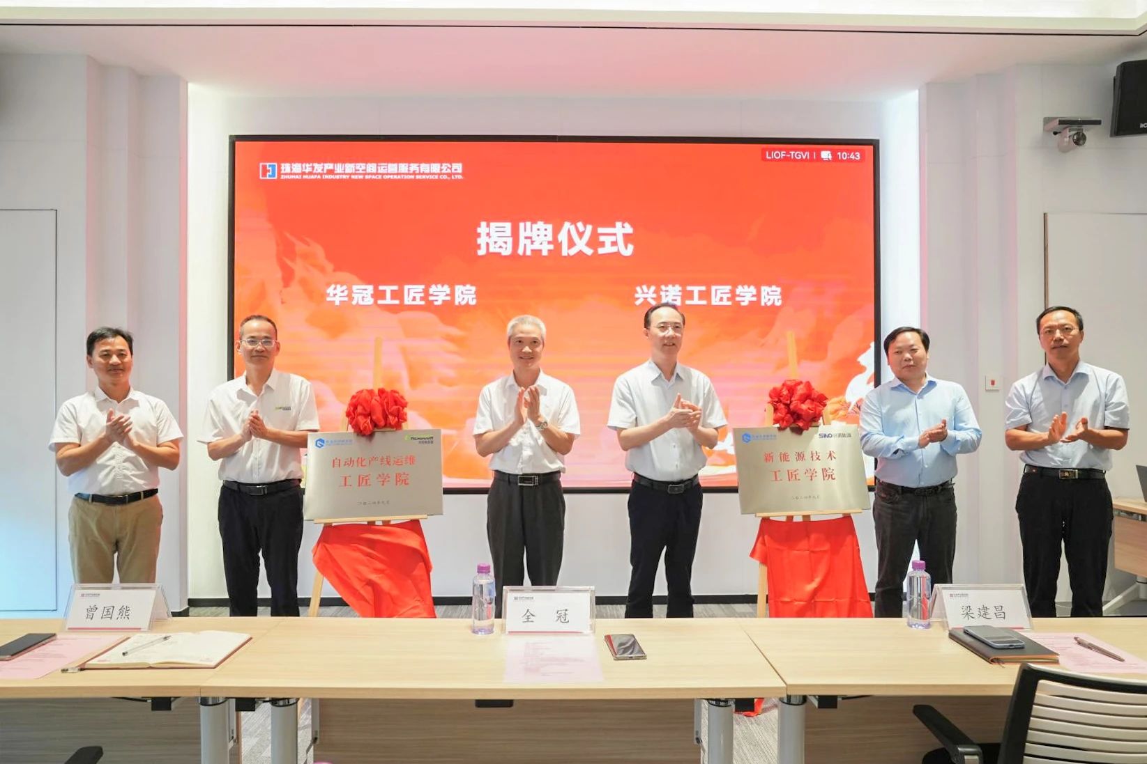儀式現(xiàn)場,參與嘉賓包括珠海市人力資源社會保障局黨組成員、副局長全冠,珠海市技師學(xué)院黨委副書記梁建昌,以及來自華發(fā)產(chǎn)業(yè)新空間常務(wù)副總經(jīng)理陳思聰、珠海興諾能源技術(shù)有限公司總經(jīng)理何立林、珠海華冠電容器股份有限公司財務(wù)總監(jiān)楊翔海等多家企業(yè)的高管和代表。