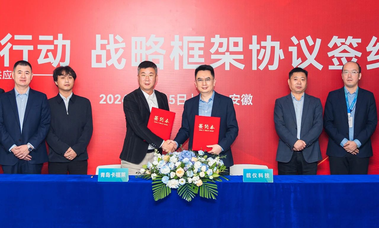 11月5日上午,安徽皖儀科技股份有限公司(以下簡稱“皖儀科技”)與青島卡福萊汽車配件有限公司(以下簡稱“青島卡福萊”)在皖儀科技總部正式簽署基地行動戰略框架協議。雙方圍繞汽車配件行業所面臨的新領域、新機遇展開深入交流,共同探索汽車配件行業發展新篇章。