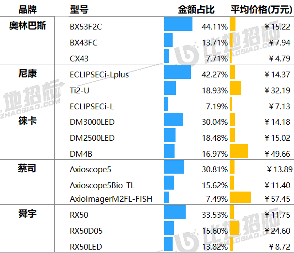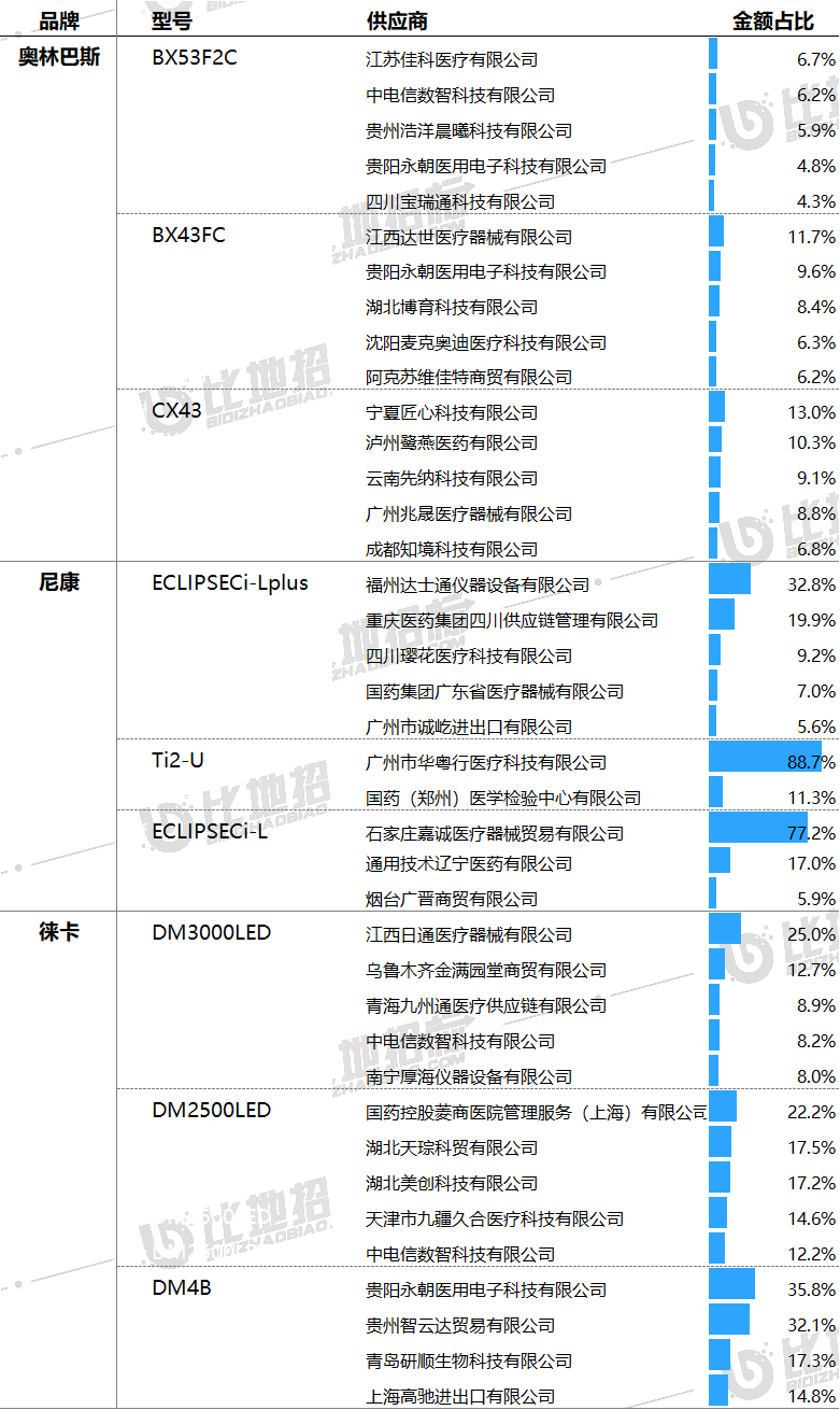 主要采購(gòu)單位及對(duì)應(yīng)中標(biāo)品牌包括:貴州省人民醫(yī)院(奧林巴斯),慶陽(yáng)市西峰區(qū)婦幼保健院(徠卡),福建醫(yī)科大學(xué)附屬第一醫(yī)院(尼康)等。