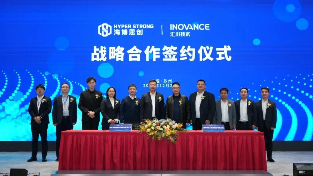 12月23日,北京海博思創科技股份有限公司董事長、首席執行官張劍輝博士一行親臨蘇州匯川技術有限公司總部。雙方秉持資源優勢互補、互惠共贏的發展理念,在此正式簽訂戰略合作協議。眾多企業高層出席并見證了這一重要時刻,海博思創方面有董事長張劍輝、聯合創始人兼運營總裁舒鵬、副總裁兼供應鏈負責人趙青;匯川技術則由董事長朱興明、能源工業SBU總裁郭立鵬、能源產品部總監冷嚴冬、能源工業SBU儲能行業總經理王曉宇等相關人員參與。