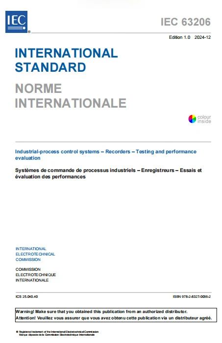 由自儀院主導制定的國際電工委員會(IEC)國際標準IEC 63206:2024《工業過程控制系統 記錄儀 試驗和性能評定》于202412月正式發布。