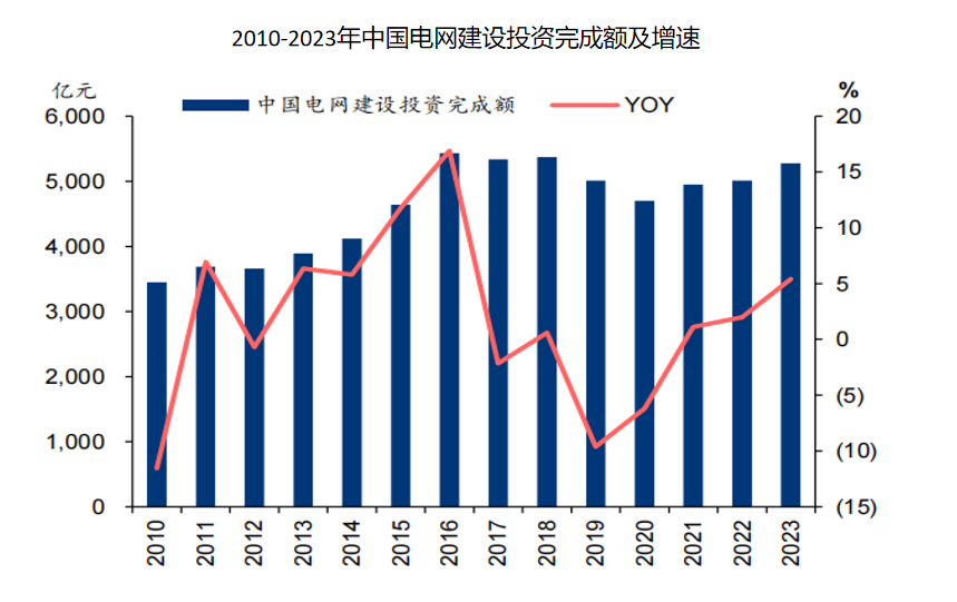 2023年電網基本建設投資額為5275億,同比增長5.4%,預計2024—2025年電網投資將維持在7%的高增速,2025年電網基本建設投資額可能超過6000億。
