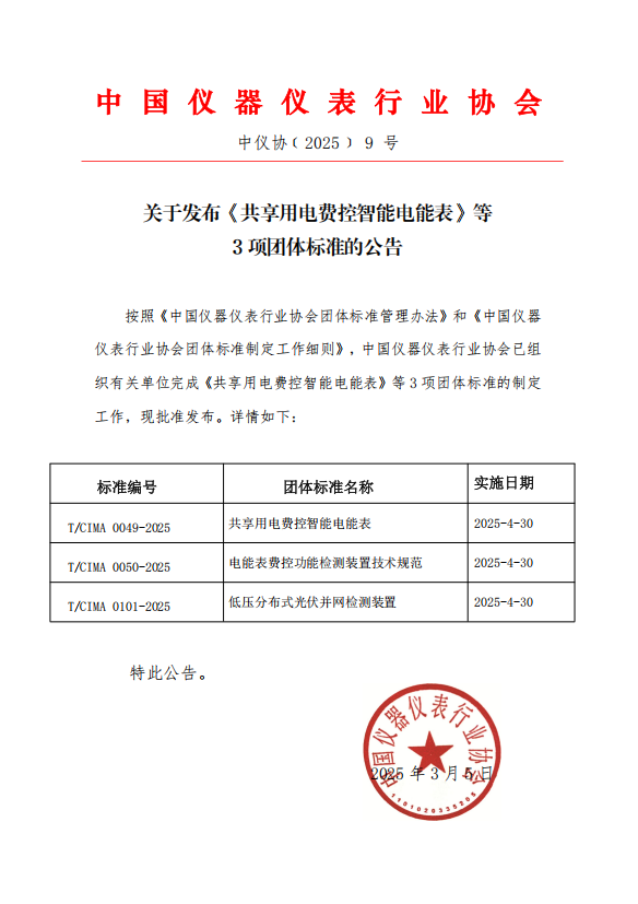 關于發布《共享用電費控智能電能表》等3項團體標準的