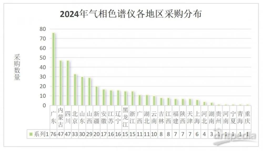 2024年1-12月,全國(guó)共有28個(gè)省市發(fā)布了氣相色譜儀的采購(gòu)需求。其中,廣東、內(nèi)蒙古和四川的采購(gòu)項(xiàng)目數(shù)量位居前三,分別發(fā)布了76臺(tái)(套)、47臺(tái)(套)和47臺(tái)(套)的采購(gòu)需求。此外,北京、山東、山西和新疆的采購(gòu)需求也較為顯著,分別發(fā)布了33臺(tái)(套)、30臺(tái)(套)、29臺(tái)(套)和20臺(tái)(套)。