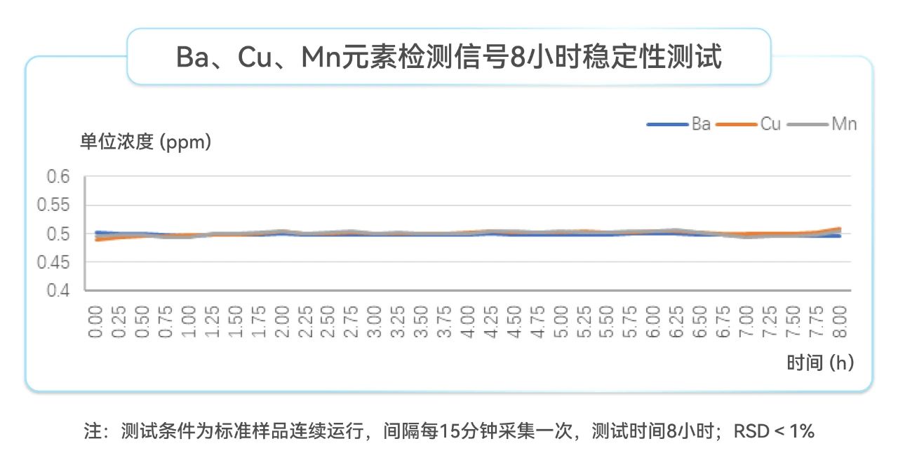 Ba、Cu、Mn元素檢測(cè)信號(hào)8小時(shí)穩(wěn)定性測(cè)試
