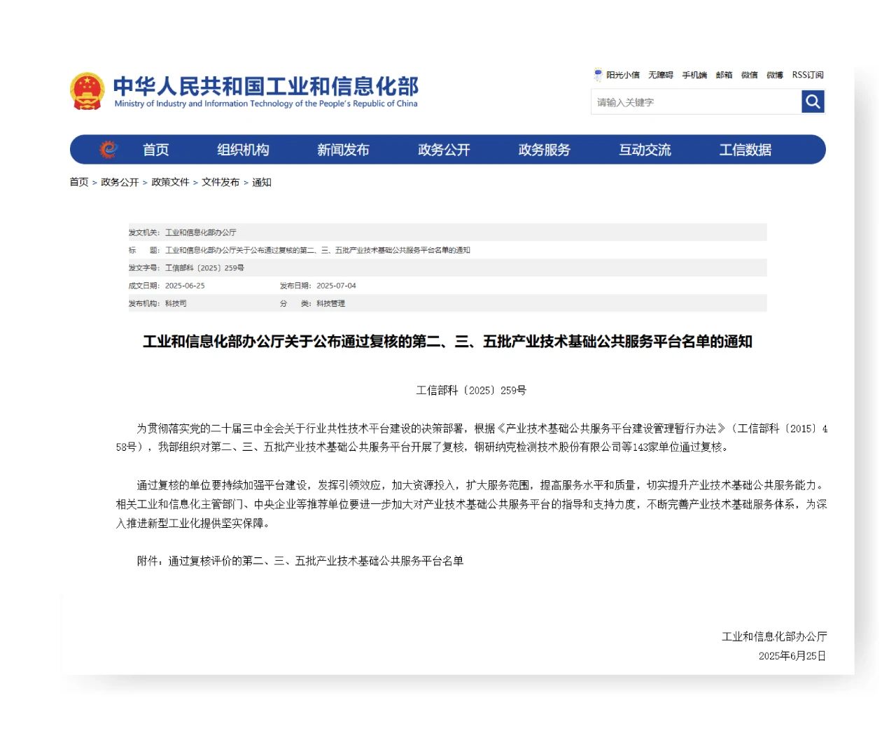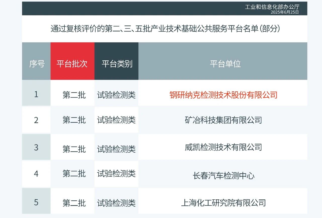 近期,國家工業(yè)和信息化部正式對外公布了第二、三、五批產(chǎn)業(yè)技術(shù)基礎(chǔ)公共服務(wù)平臺的復(fù)核通過名單。鋼研納克檢測技術(shù)股份有限公司憑借在工業(yè)(特殊鋼)產(chǎn)品質(zhì)量控制與技術(shù)評價領(lǐng)域的深厚積累和突出貢獻,成功通過復(fù)核,再次彰顯鋼研納克作為國家級技術(shù)支撐平臺的領(lǐng)先地位。