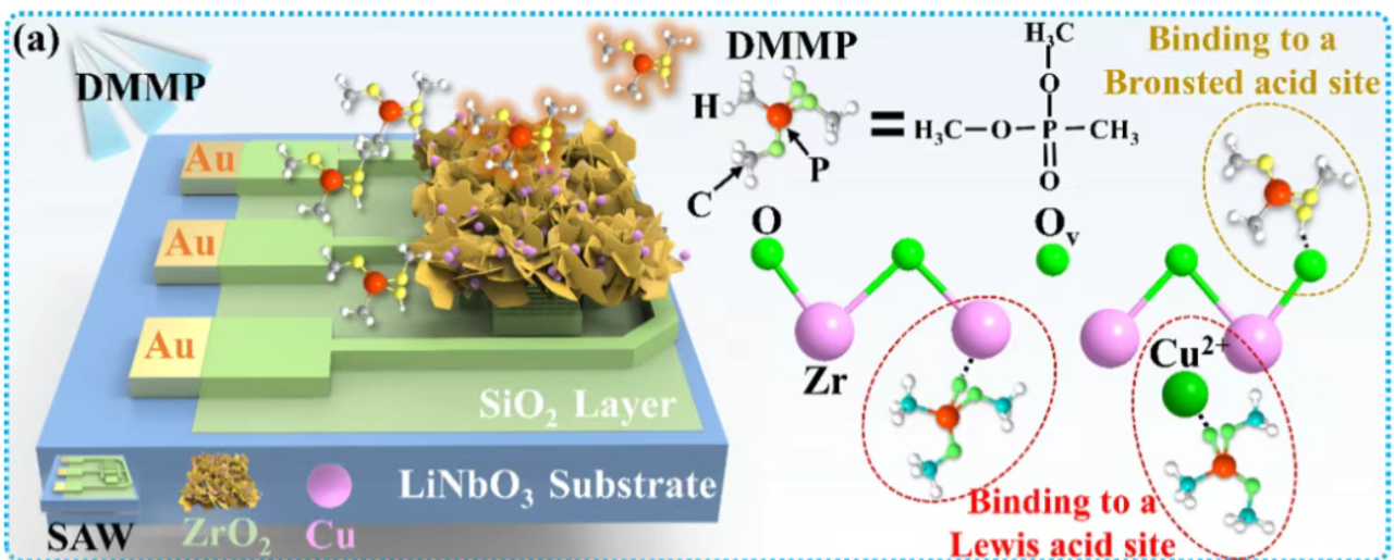 圖|超高頻SAW DMMP氣體傳感器結(jié)構(gòu)和傳感原理示意圖
