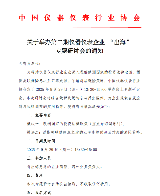 關于舉辦第二期儀器儀表企業(yè)“出海”專題研討會的通知