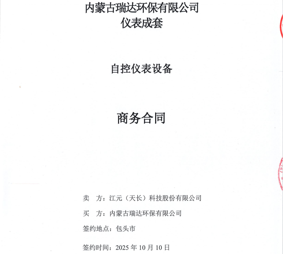 1010日,江元科技成功簽約內(nèi)蒙古瑞達(dá)環(huán)保有限公司儀表成套供貨合同。本次項(xiàng)目中,江元科技將為瑞達(dá)環(huán)保提供包括84臺(tái)PRS雷達(dá)液位計(jì)、56臺(tái)WDM在線水質(zhì)分析儀表、28臺(tái)WDM壓力開(kāi)關(guān),以及91JY系列電磁流量計(jì)在內(nèi)的全套自動(dòng)化儀表解決方案。