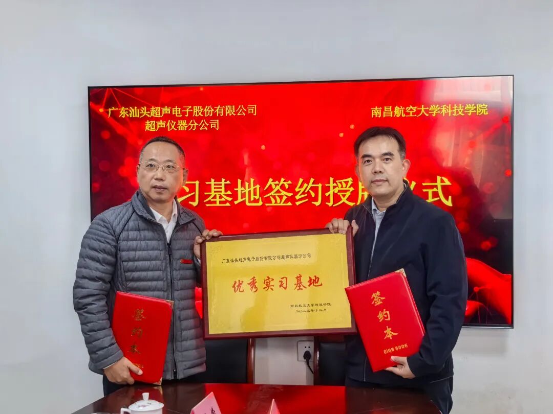 1219日,南昌航空大學科技學院“汕頭超聲獎學金”捐贈暨校企共建實習基地授牌儀式在南昌航空大學上海路校區隆重舉行。出席儀式的有南昌航空大學科技學院黨委書記鄧洪峰、南昌航空大學無損檢測專業創始人之一任吉林教授、汕頭超聲副總經理許培杰及雙方代表,共同見證這一深化校企合作的重要時刻。