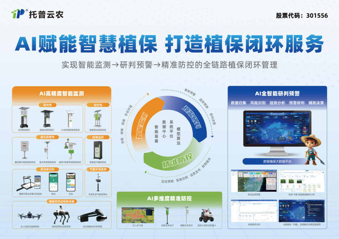 此次項目的技術落地,是托普云農在智慧農業領域長期深耕的集中體現。通過持續深化人工智能、大數據等數智技術在植保領域的融合應用,托普云農成功打通智能監測→研判預警→精準防控的數智植保全鏈路完整閉環,構建起現代化植保防控體系,推動植保行業向智能化、自動化、綠色化方向邁進。