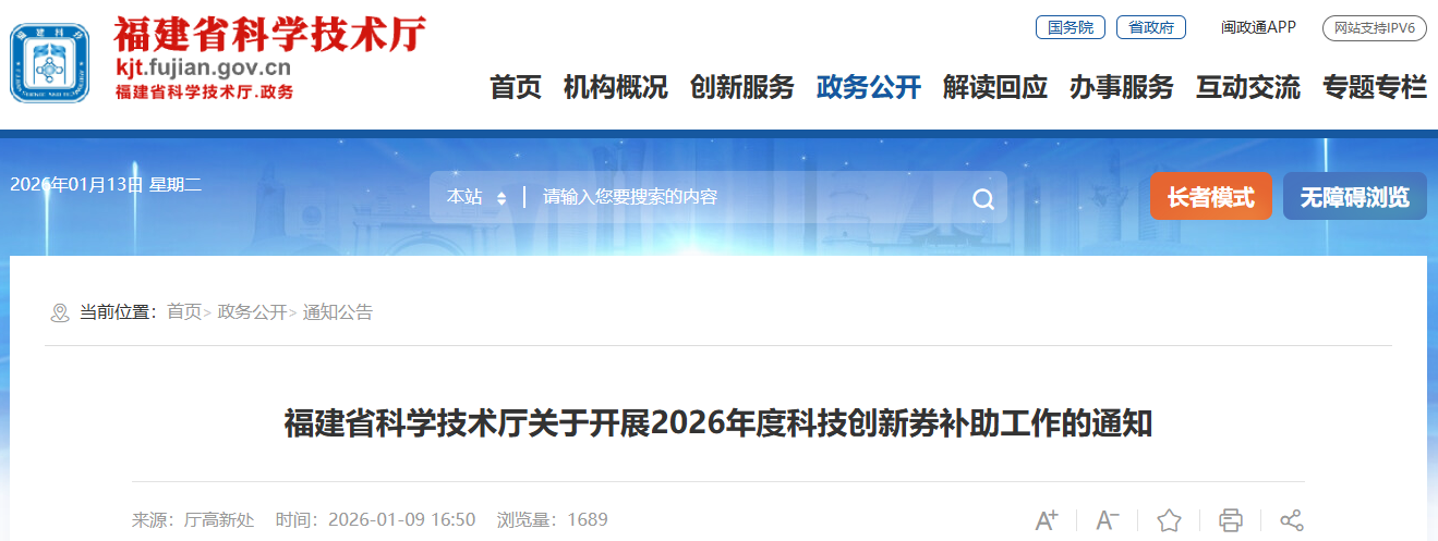 福建省科學技術廳關于開展2026年度科技創(chuàng)新券補助工作的通知