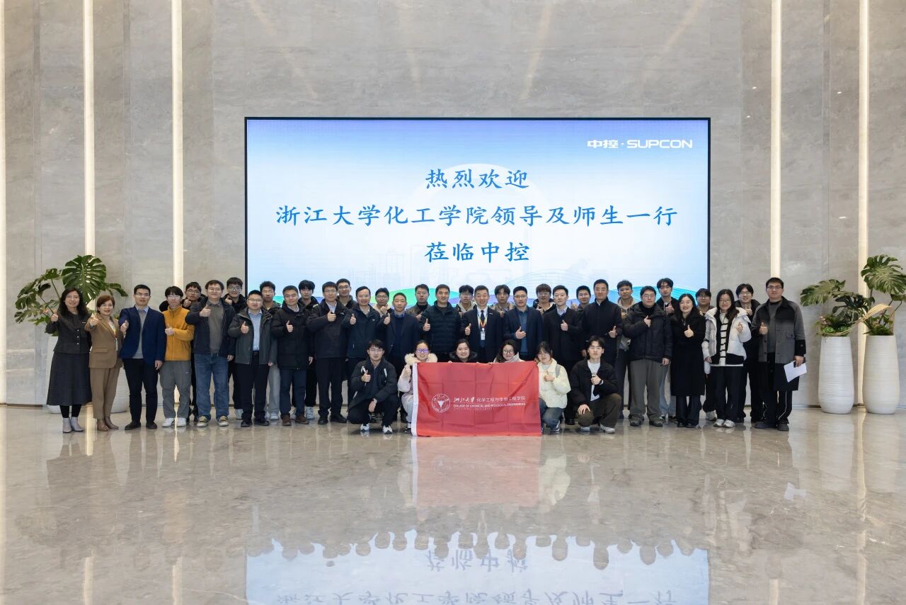 浙大化工學院副院長鮑宗必、要輝,黨委副書記、紀委書記廉潔攜師生代表到訪;中控技術高級副總裁俞海斌,副總裁吳玉成、余晶鑫等領導出席。雙方圍繞AI驅動化工行業轉型升級、關鍵核心技術攻關及產業化落地應用等議題展開了深入探討。