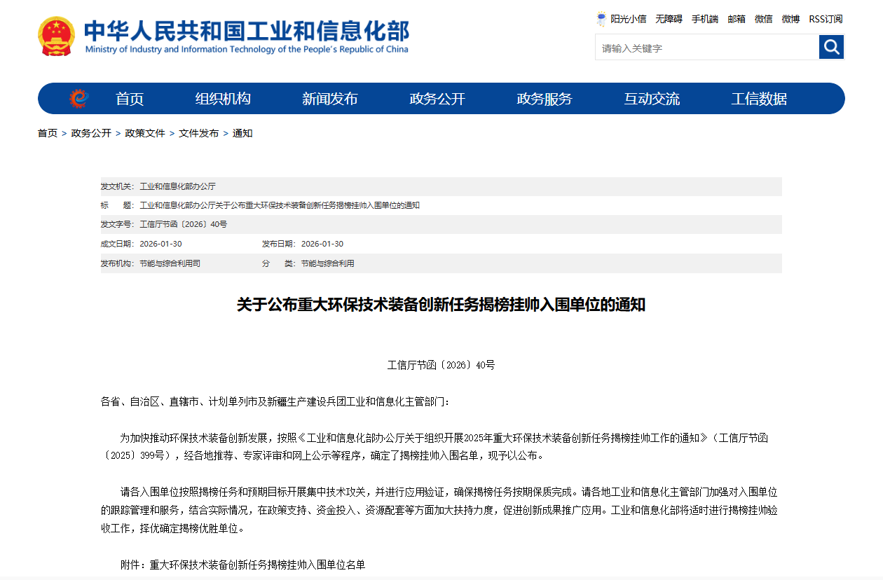 是工業(yè)和信息化部為破解生態(tài)環(huán)境領(lǐng)域關(guān)鍵技術(shù)裝備“卡脖子”難題組織實(shí)施的重要專項(xiàng)。該機(jī)制聚焦當(dāng)前環(huán)保行業(yè)發(fā)展中面臨的核心技術(shù)與裝備瓶頸,旨在通過(guò)“懸榜攻關(guān)、能者揭榜”的方式,推動(dòng)一批具有自主知識(shí)產(chǎn)權(quán)的關(guān)鍵技術(shù)與高端裝備實(shí)現(xiàn)突破,加速先進(jìn)環(huán)保裝備的規(guī)模化應(yīng)用與產(chǎn)業(yè)化發(fā)展,為我國(guó)生態(tài)文明建設(shè)與綠色低碳轉(zhuǎn)型提供堅(jiān)實(shí)技術(shù)支撐。
