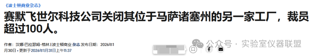 這并非賽默飛世爾科技近期的唯一運(yùn)營調(diào)整。2026年1月初,公司已宣布計劃關(guān)閉北卡羅來納州阿什維爾的一家制造工廠,裁員421人。更早之前,公司在馬薩諸塞州已有數(shù)次裁員:2025年2月,其在劍橋和普萊恩維爾的工廠裁員約300人;2024年11月,公司關(guān)閉了萊克星頓的辦公點(diǎn),并縮減在普萊恩維爾和劍橋的員工規(guī)模,累計影響160個崗位。