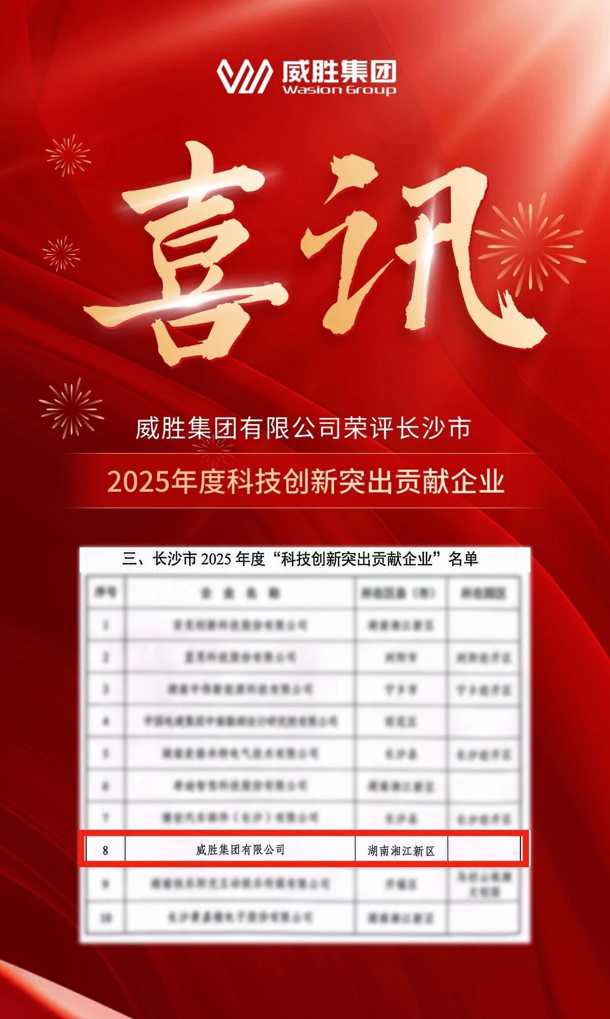 會上發(fā)布了長沙市2025年度“經(jīng)濟質(zhì)效突出貢獻(xiàn)企業(yè)”“工業(yè)強市突出貢獻(xiàn)企業(yè)”“科技創(chuàng)新突出貢獻(xiàn)企業(yè)”“消費引領(lǐng)突出貢獻(xiàn)企業(yè)”名單,每個名單僅10家企業(yè)上榜。威勝集團有限公司榮評長沙市2025年度“科技創(chuàng)新突出貢獻(xiàn)企業(yè)”。