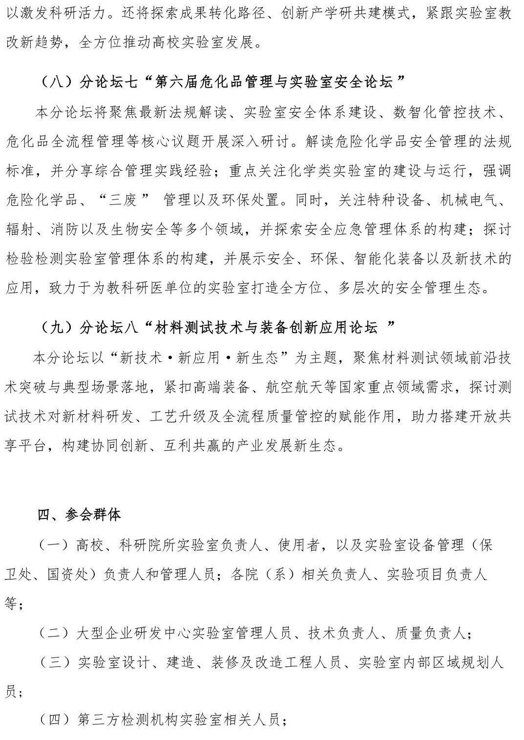 本次分論壇將聚焦最新法規(guī)解讀、實驗室安全體系建設(shè)、數(shù)智化管控技術(shù)、危化品全流程管理等核心議題開展深入研討。解讀危險化學(xué)品安全管理的法規(guī)標(biāo)準(zhǔn),并分享綜合管理實踐經(jīng)驗;重點關(guān)注化學(xué)類實驗室的建設(shè)與運行,強調(diào)危險化學(xué)品、“三廢 ” 管理以及環(huán)保處置。同時,關(guān)注特種設(shè)備、機械電氣、輻射、消防以及生物安全等多個領(lǐng)域,并探索安全應(yīng)急管理體系的構(gòu)建;探討檢驗檢測實驗室管理體系的構(gòu)建,并展示安全、環(huán)保、智能化裝備以及新技術(shù)的應(yīng)用,致力于為教科研醫(yī)單位的實驗室打造全方位、多層次的安全管理生態(tài)。