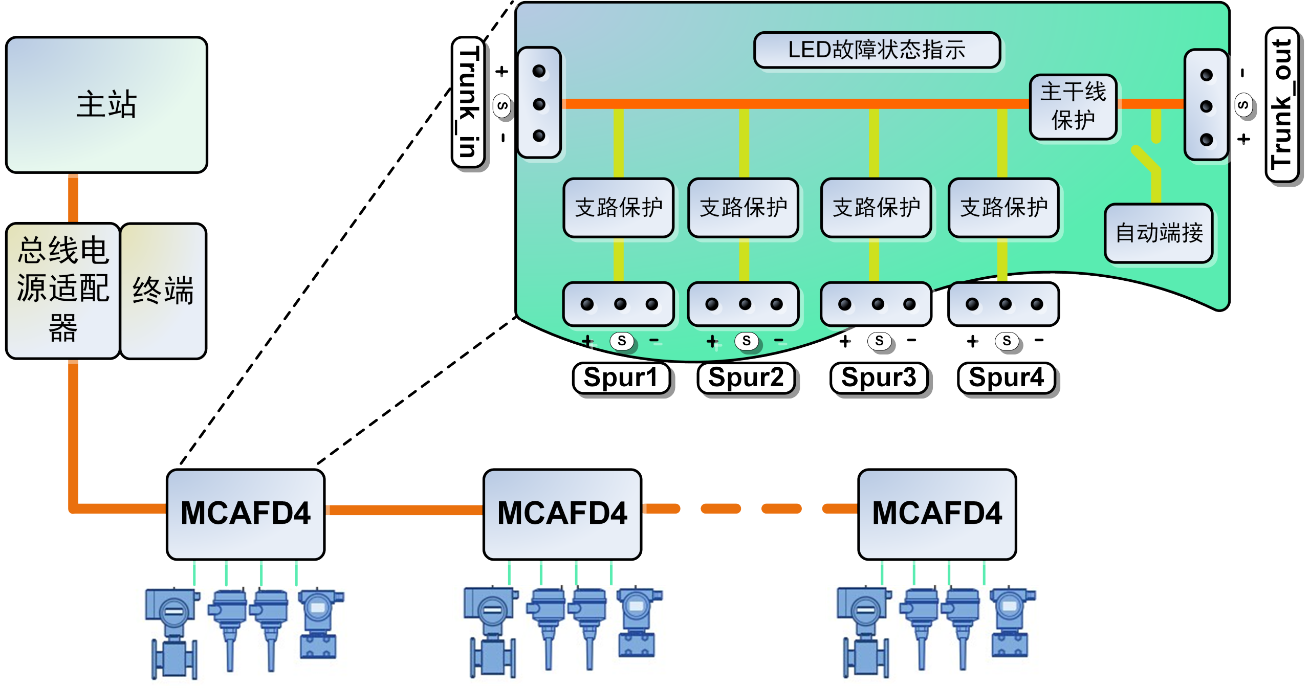 通過MCAFD系列分配器,用戶可構建標準主干線分支結構現場總線網絡,在節省電纜和橋架成本的同時,實現故障快速隔離與診斷,顯著提升系統可用性。