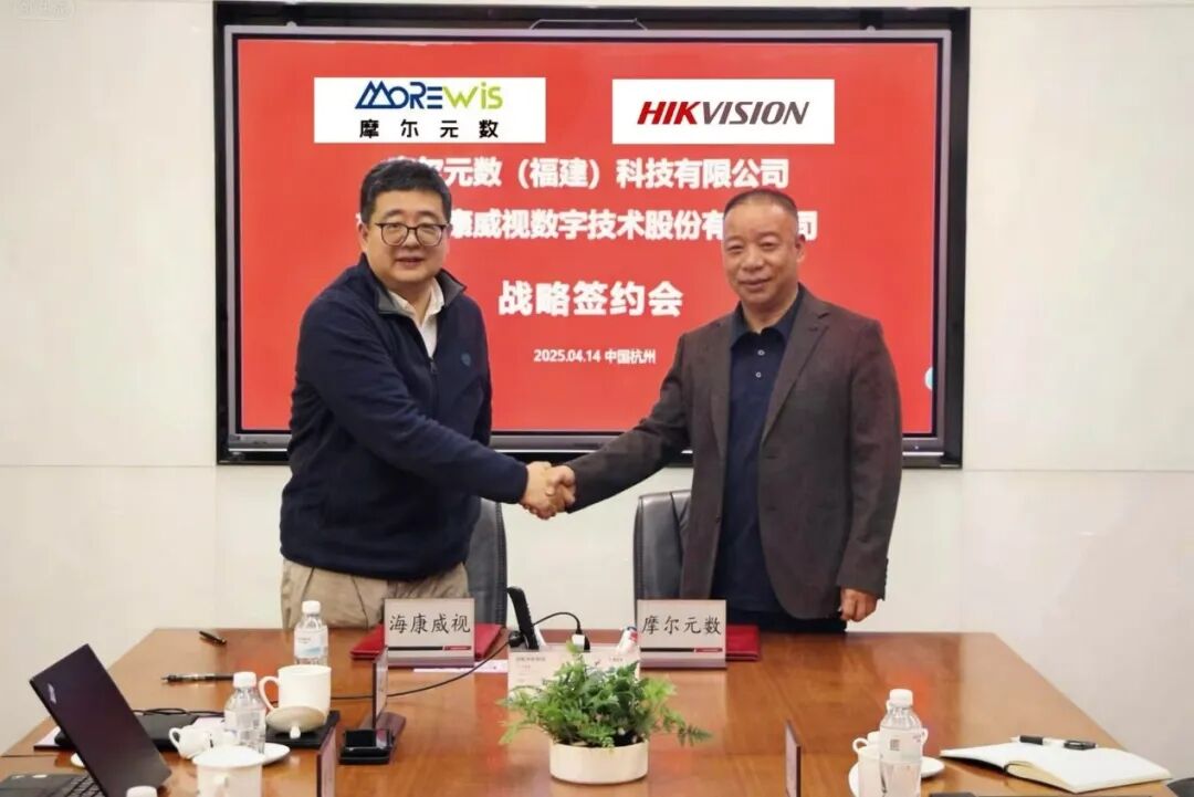 近日,摩爾元數(福建)科技有限公司(以下簡稱“摩爾元數”)一行到訪杭州海康威視數字技術股份有限公司(以下簡稱“海康威視”),雙方舉行戰略合作簽約儀式并開展座談交流。摩爾元數董事長劉平與海康威視高級副總裁徐習明代表雙方簽署合作協議。摩爾元數副總經理黃根才、葉世恩、原曉君,海康威視工業企業業務部總經理蘇杭、福建業務中心場景數字化業務部總監吳文彬等出席簽約儀式及座談交流。