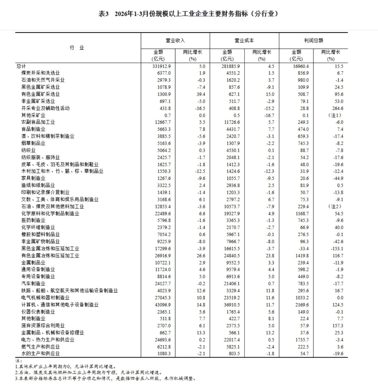 【數據發布】2026年1—3月份全國規模以上工業企